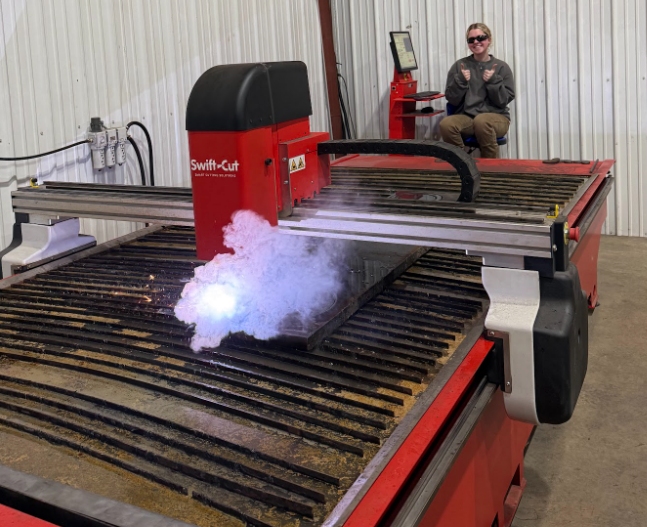 Our CNC Plasma Table Operator Kayla, Cutting a Custom Spacer Plate out of 1 7/8 inch Steel Plate